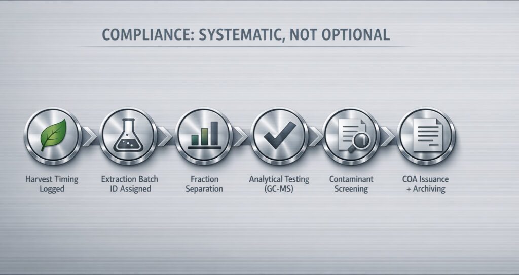 Batch-level testing helps identify variation early and supports traceability. It reduces the risk of downstream inconsistencies and compliance questions.