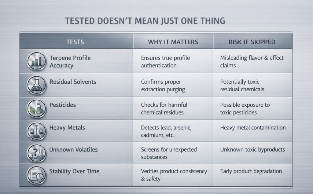 Many terpene products come with COAs that appear thorough at first glance but omit meaningful panels. Absence data may be partial, outdated, or missing entirely.